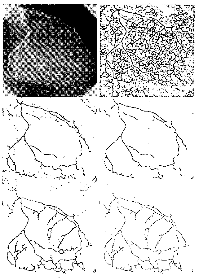 Um método de detecção e extração de esqueletos das artérias coronárias em um angiograma coronário foi proposto por Haris et al. Os angiogramas constituem a ferramenta mais utilizada na identificação de doenças coronárias. A maior incidência deste tipo de doença está relacionado à arteriosclerose que resulta na diminuição do suprimento de sangue no músculo do coração. A análise visual de um angiograma coronário pode fornecer um diagnóstico qualitativo, mas, para toma decisões médicas para o tratamento de pacientes com doenças coronárias, o uso de um sistema automático para auxílio em uma análise mais objetiva e precisa é importante. Em vista disto, os resultado conseguidos por são animadores Haris et al (Figura 11).