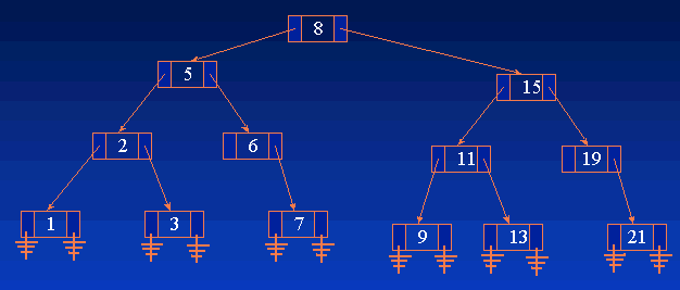 Exemplo: Inserimos as chaves 8 a 15, em ordem