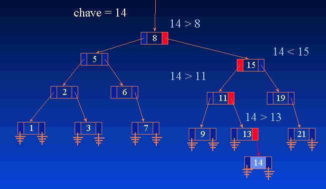 sempre à esquerda toda vez que a chave procurada for menor do que