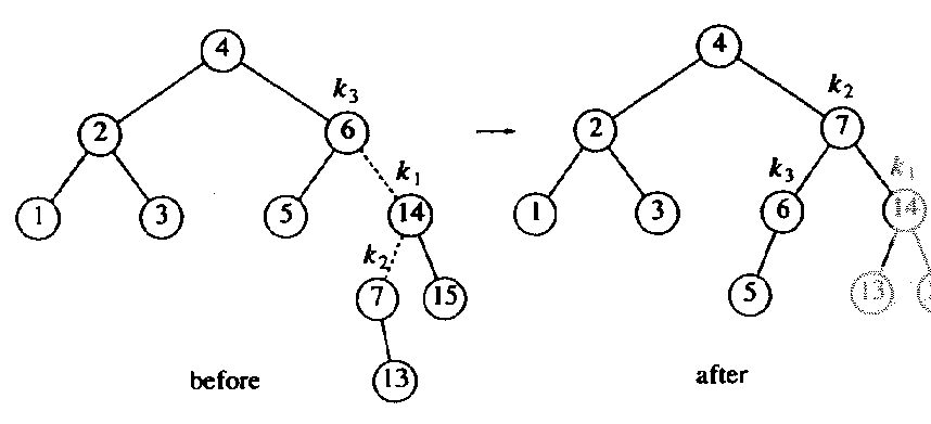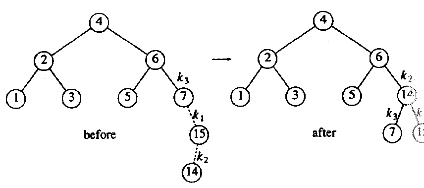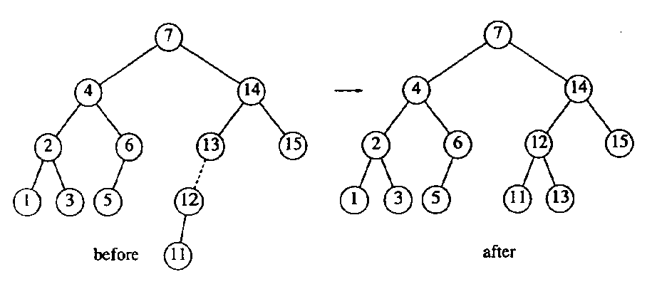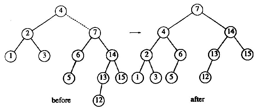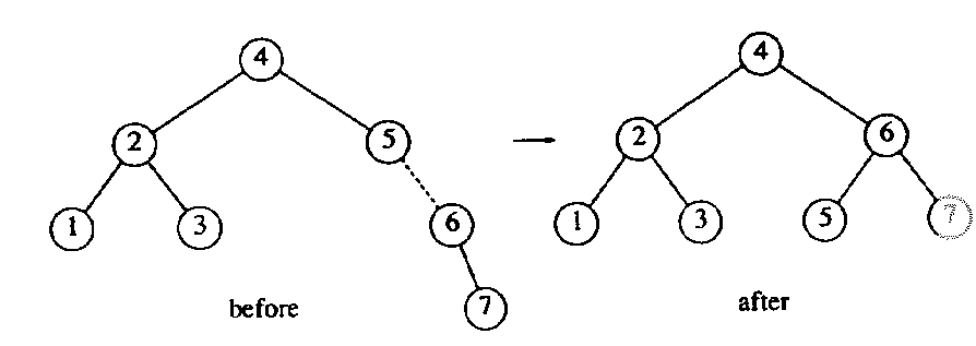 Com a rotação da subárvore em torno do nodo 7, rebalanceamos.