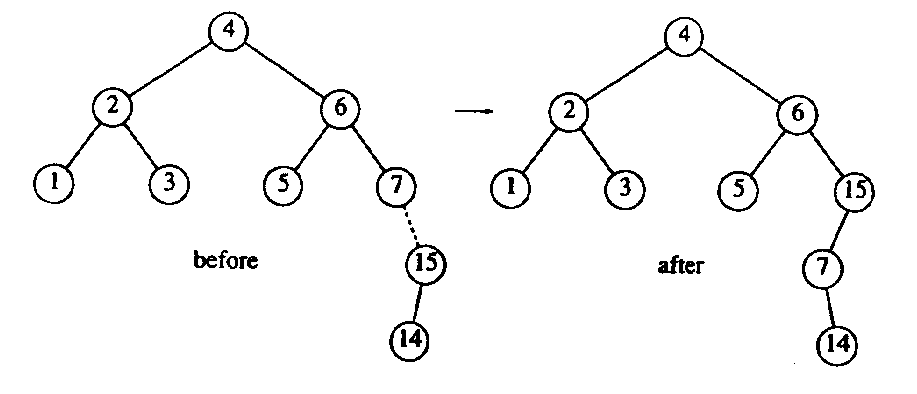 7 como 14 são candidatos à subárvore esquerda de 15.