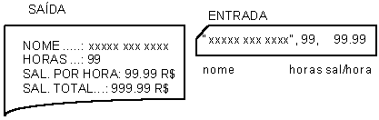 Suponha que se deseja uma saída constituída de uma folha na qual constem os dados e a resposta numérica. Além disso devem constar frases explicando o significado de cada número, conforme indicado na Figura I-3.